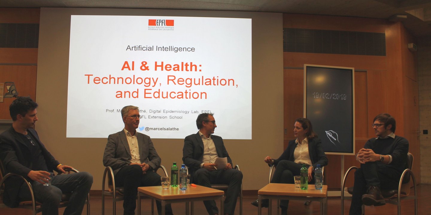 «Künstliche Intelligenz im Gesundheitswesen: Chancen und Herausforderungen» Paneldiskussion mit Prof. Marcel Salathé, Prof. Burkhard Ludewig (Kantonsspital St. Gallen), Dr. Simone Wyss Fedele (Novartis) und Prof. Thomas Epper (UNISG)