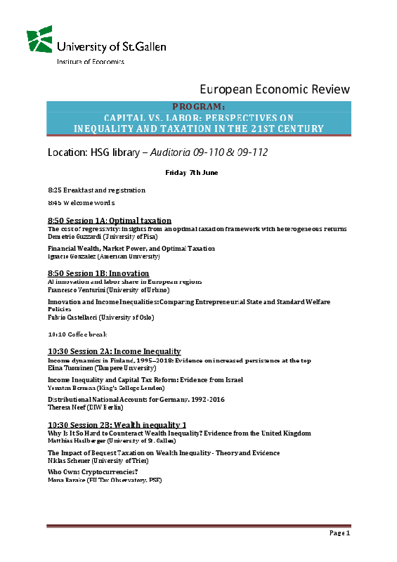 Updates and news about the workshop will be available online at University of St.Gallen | FGN-HSG | Capital vs. Labor (unisg.ch)